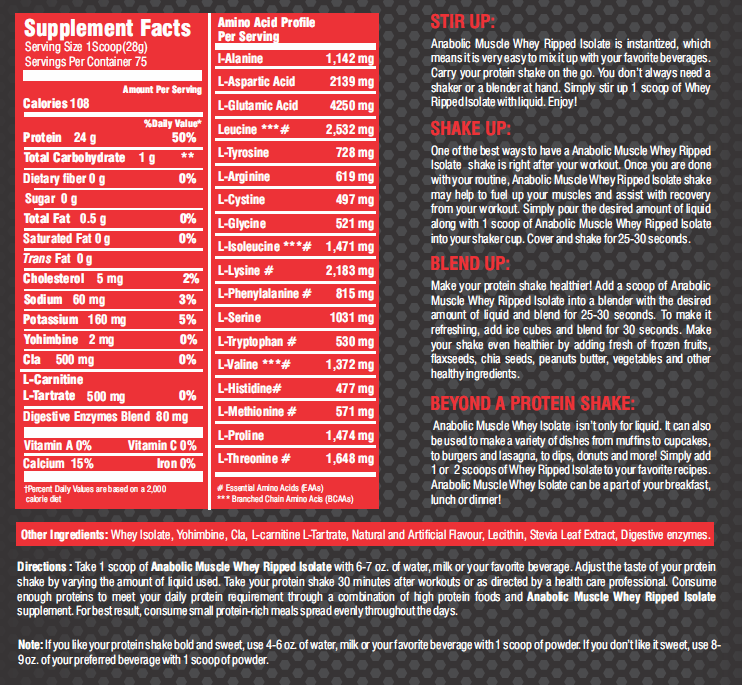 Anabolic Muscle Whey Ripped Isolate is an effective protein powder tailored for lean muscle support, enhanced recovery, and fat loss control, ideal for athletes looking to achieve a shredded physique.