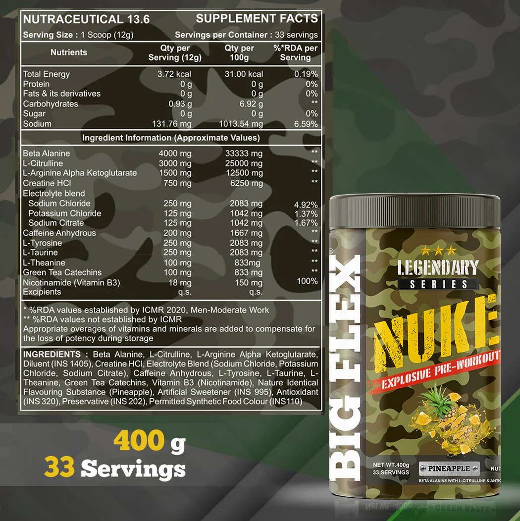 BCAAs and Nicotinamide: Help with muscle growth, recovery, and metabolism.