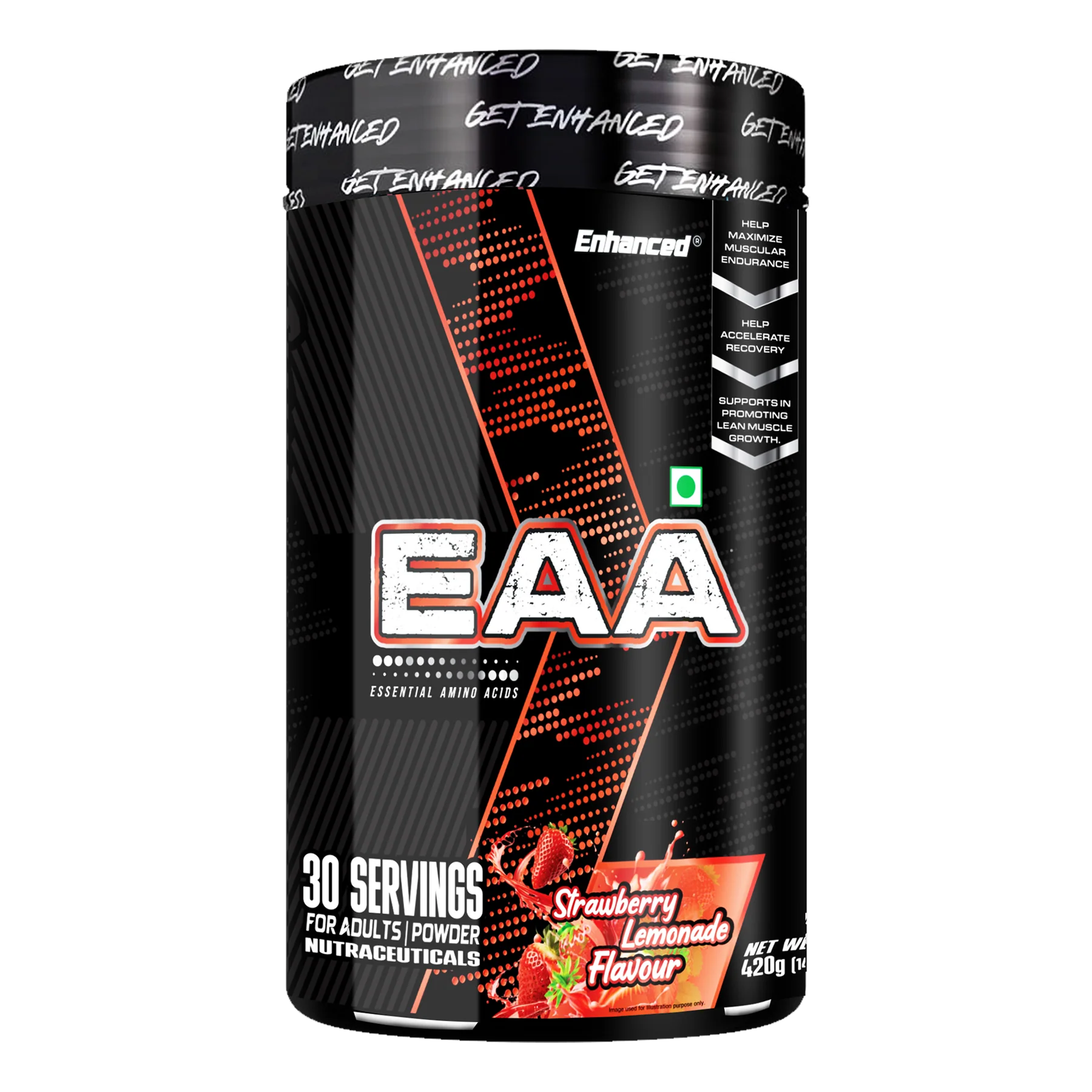 Enhanced EAA is the ultimate essential amino acid supplement, meticulously crafted to deliver all nine essential amino acids (EAAs) in precise ratios. Designed for athletes and fitness enthusiasts, this powerhouse formula stimulates muscle protein synthesis, offering unparalleled support for growth, recovery, and overall performance. Whether you are a professional athlete or someone looking to elevate their fitness regime, Enhanced EAA ensures your body gets the nutrients it needs to thrive after intense workouts.
