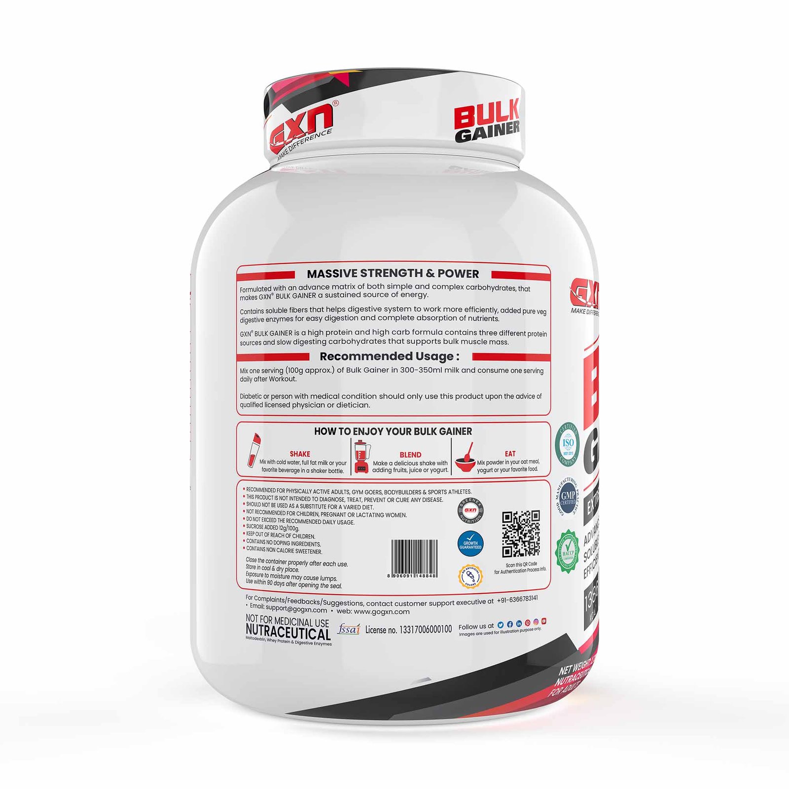 GXN Bulk Gainer is your best bet for effective bulking, muscle volume, and a stronger, more athletic physique—with a delicious taste and easy digestion, every time.