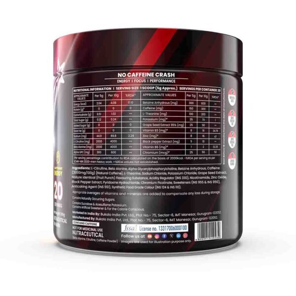 Supports energy, strength, and endurance during workouts with beta-alanine and L-citrulline