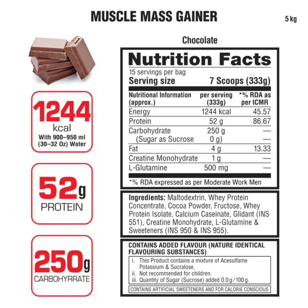 • Delivers 52g protein and over 250g carbohydrates per serving for muscle growth and energy replenishment​