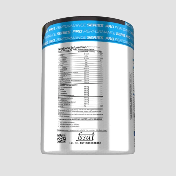 Ingredients: Beta-Alanine, Citrulline Malate, Betaine Anhydrous, Threonine, Glycine, Choline Bitartrate, Green Tea Extract, Coffee Bean Extract, Mucuna Pruriens, Piperine