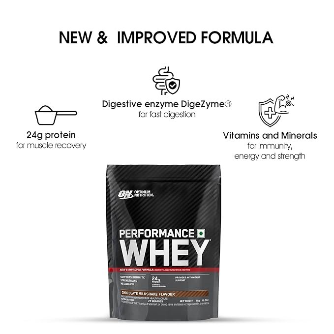 Optimum Nutrition ON Performance Whey Protein in Chocolate Milkshake flavor provides a delicious, effective, and reliable protein source to help athletes and fitness enthusiasts achieve their muscle and fitness goals.