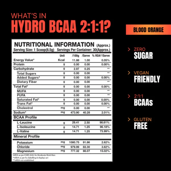 PROSUPPS HYDRO BCAA 2:1:1 BLOOD ORANGE delivers an effective hydration and recovery solution tailored to athletes seeking to maximize muscle gains and reduce fatigue in a refreshing flavor profile.