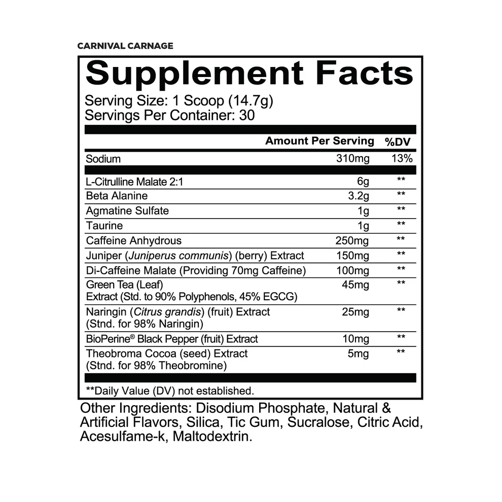 • Enhances muscle pumps and vascularity with 6g L-Citrulline Malate​