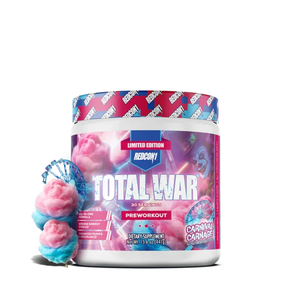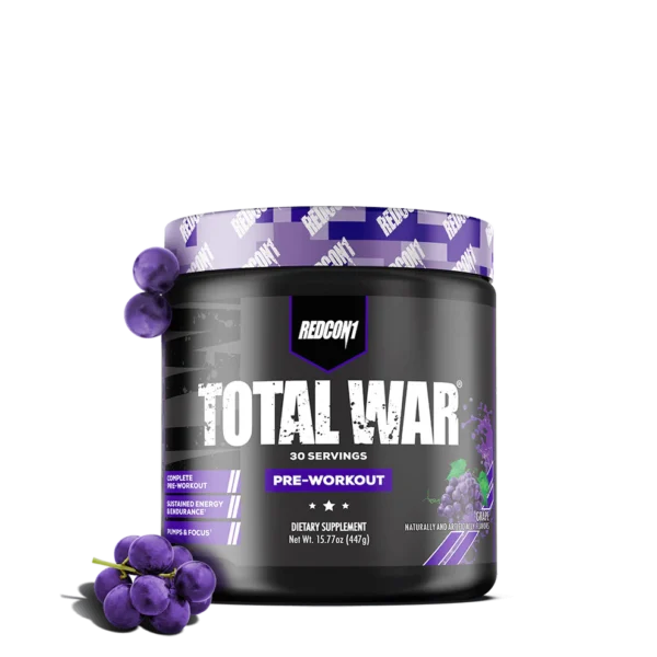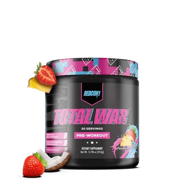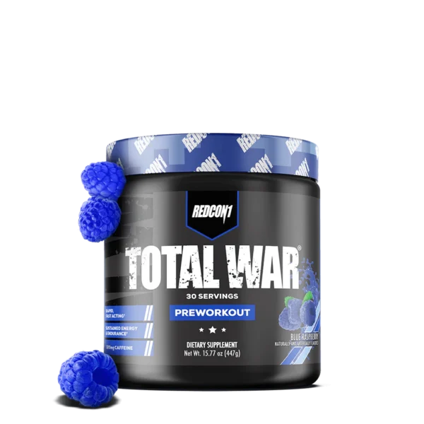 TOTAL WAR ELITE PRE-WORKOUT is the #1 selling pre-workout formula from REDCON1, designed to deliver explosive energy, intense focus, and maximum endurance for elite athletes and fitness enthusiasts. With 320mg of caffeine, 6g of L-Citrulline Malate, and 3.2g of Beta-Alanine, this powder fuels high-intensity workouts by improving blood flow, boosting muscular endurance, and increasing power and pumps. Fully transparent with clinically researched dosages, TOTAL WAR ensures you train with unmatched intensity and reach peak readiness every session.